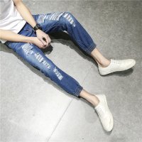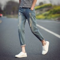 丹杰仕男装欧美怀旧牛仔裤男破洞补丁裤子乞丐男士九分裤 k107-P35小咖秀百搭潮