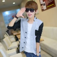 丹杰仕 男装立领夹克外套 男士时尚拼色夹克学生修身夹克 上衣外套 小咖秀百搭潮