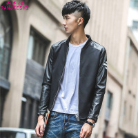 丹杰仕秋冬新款男装夹克皮衣开衫外套PU皮黑色拼接小咖秀百搭潮