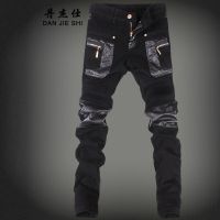 丹杰仕男装休闲牛仔裤皮裤男士时尚休闲大码皮裤男小脚牛仔长裤胖子大码裤子男裤皮时尚裤子