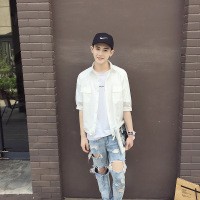 丹杰仕帅气男装中袖衬衫2016夏季新款时尚休闲修身韩版港风日系纯色连肩袖口袋中袖衬衣防晒衣小咖秀百搭潮
