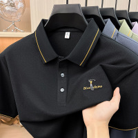 夏季polo衫男士短袖翻领冰丝痕T恤新款中年男装商务体恤男