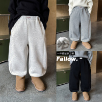 童酷男童冬款百搭字母贴标宝宝休闲裤纯色加绒保暖儿童卫裤潮