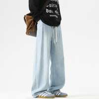 高街潮牌男士阔腿牛仔裤夏季抽绳腰宽松薄款水洗垂感休闲男装长裤