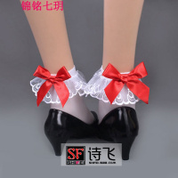 锦铭七玥BEILEISI花边蝴蝶结低筒丝袜短袜丝袜靓女学生袜天鹅绒中厚短筒袜