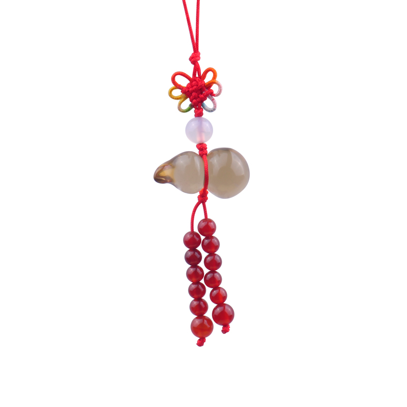 梦克拉Mkela 水晶葫芦造型中国结u盘挂绳钥匙链 福禄平安 汽车钥匙扣 搭配红白玉髓 茶壶配饰 男士 摆件 玛瑙