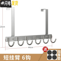 三维工匠卧室免打孔不锈钢后挂钩厚6cm 收纳包包衣服上挂衣架置物架 6钩短臂经典款(6cm厚门可用)