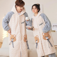 浪莎珊瑚绒睡衣男款秋冬季加厚保暖大码睡袍可外穿新款家居服套装