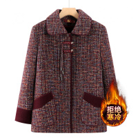 奶奶毛呢外套女士老年人新款冬装加绒加厚翻领上衣妈妈新中式呢子