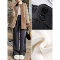 灯芯绒西装裤女新款秋冬季高腰垂感直筒宽松小个子加绒阔腿裤