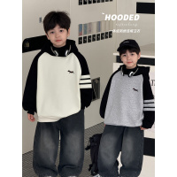 • 童酷儿童冬款湖州织里童装一体绒小狗刺绣拼色连帽男童卫衣潮
