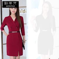 默蒂梵连衣裙女夏2017新款女装韩版ol修身v领女裙七分袖职业装