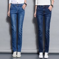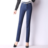 秋冬新款牛仔裤女韩版修身弹力高腰小直筒女装牛仔长裤