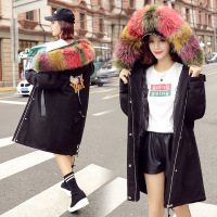 高端女装直筒中长款加厚保暖冬季白鸭绒连帽真毛领羽绒服