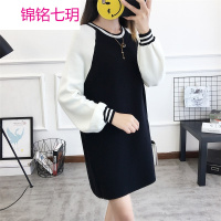 锦铭七玥2017秋季新款韩版宽松中长款套头毛衣针织衫直筒连衣裙女装孕妇装