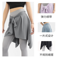 防走光一片裙绑带运动瑜伽短裙假两件瑜伽裙芭蕾舞蹈裙瑜伽服