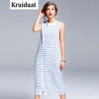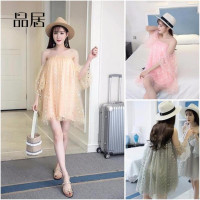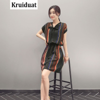 YIBUSHENG[五彩斑斓的人间理想]HL棉绸松紧圆领褶皱短袖腰带连衣裙