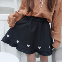 秋冬女装韩版ulzzang学生宽松毛呢刺绣半身裙短裙伞裙高腰裙a字裙