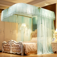 U型导轨蚊帐三开宫廷落地钓鱼竿伸缩1.5米1.8m双人床家用蚊帐