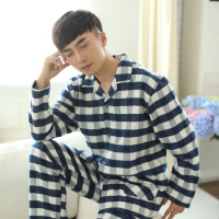 娉语高档男士秋冬长袖长裤睡衣 加厚中空纱彩棉绒布全棉家居服套装