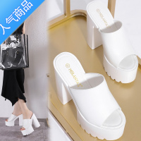 SUNTEK超高跟凉拖鞋女凉鞋鱼嘴外穿2023粗跟厚底16M黑白色一字拖