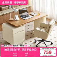 全友家居书桌原木奶油风卧室书房家具办公学习可伸缩储物收纳桌