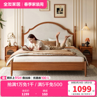 全友家居法式复古橡木实木床1.8x2米主卧室双人床小户型高脚床