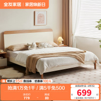 全友家居新中式舒适软包床屏橡胶木实木脚板木床卧室家具双人床
