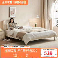 全友家居 板式床奶油风现代简约主卧室实木高脚双人大床