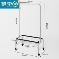 敬平福利多家居挂衣架落地卧室晾衣架多功能置物架移动衣帽架衣服架子 80装衣篮加长款[橡胶轮+包边]