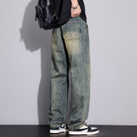 复古水洗工装牛仔裤 男款大贴袋阔腿裤泥色高街潮流老爹长裤
