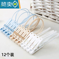 敬平日式塑料晾晒夹带绳索多功能固定晾衣夹学生宿舍阳台家用防风夹子 12个装(蓝+白+米)