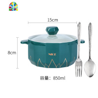孔雀蓝可爱陶瓷汤碗泡面碗带盖日式学生宿舍方便面碗家用 FENGHOU 鹿角+三角型送大汤勺叉