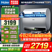 海尔(Haier)超薄扁桶双胆60升家用电热水器3300W小魔盒镁棒免更换小蓝瓶 变频速热 BK5[以旧换新]