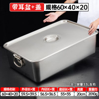 洛滑不锈钢方盆带耳加深加厚带盖平底长方形自助餐盆份数盆 33升 60*40*20cm高 带耳+盖
