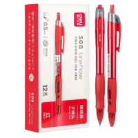 苏宁宜品 透明子弹头签字笔 0.5mm中粗红芯 按动式塑料组合装