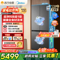 美的(Midea)熊墩墩601升十字四开门底部散热超薄纯平全嵌PST+净化风冷无霜变频冰箱BCD-601WUSPZM(E