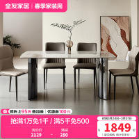全友家居时尚轻奢简约小蛮腰亮光岩板餐桌生态科技皮软包餐椅家具