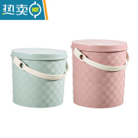 敬平塑料加厚可坐家用钓鱼桶手提洗澡篮洗车桶幼儿园收纳桶带盖水桶凳 粉配灰 常规号