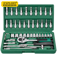 开拓(EXPLOIT)汽修工具 套装套筒扳手棘轮维修全套 小飞46件套(24齿) 100466