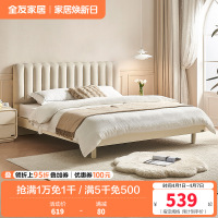 全友家居奶油风布艺软包双人床小户型主卧室实木高脚床