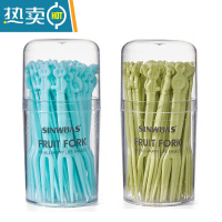 敬平水果叉套装水果签塑料两齿家用吃水果蛋糕甜品叉点心小叉子 蓝色+绿色 100支[盒装]