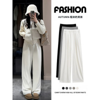 奶芙白色阔腿裤女秋冬季高腰垂感宽松休闲慵懒小个子加绒糯米裤子