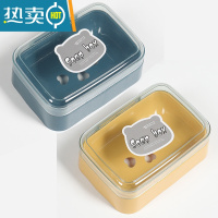 敬平翻盖肥创意卡通沥水带盖便携式学生宿舍卫生间家用浴室香 蓝色1个+黄色1个皂盒