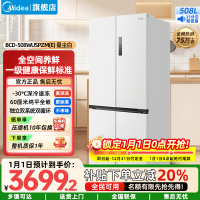 美的(Midea)冰箱家用M60双系统 底部散热十字四门超薄平嵌双循环大容量BCD-508WUSPZM(E)星尘白