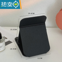 敬平复古皮质台式镜子桌面办公室小折叠化妆镜学生宿舍梳妆镜随身便携 小号黑色便携式用镜