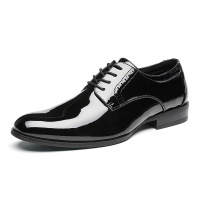 英伦布洛克亮面尖头皮鞋男花漆皮商务正装鞋休闲系带婚礼鞋德比
