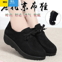 聚范新款老北京布鞋潮流时尚百搭坡跟女鞋软底厚底轻巧黑色单鞋工作鞋