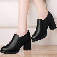 单鞋女2017秋冬新款 圆头粗跟低帮鞋 深口松紧带 防水台时尚女鞋 黑色 36