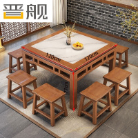 晋舰八仙桌家用四方桌中式正方形餐桌椅组合 120cm岩板翘凳花梨色